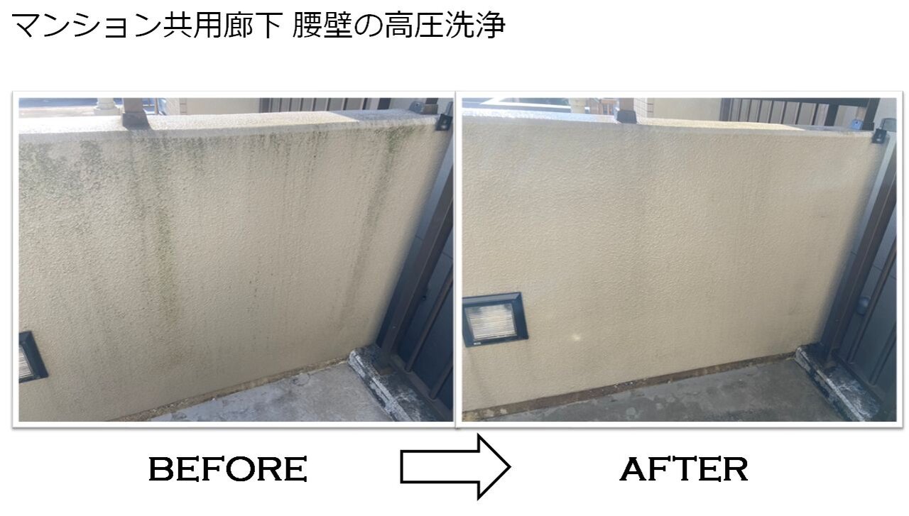 マンション共用部分である廊下や階段の腰壁についた汚れを、