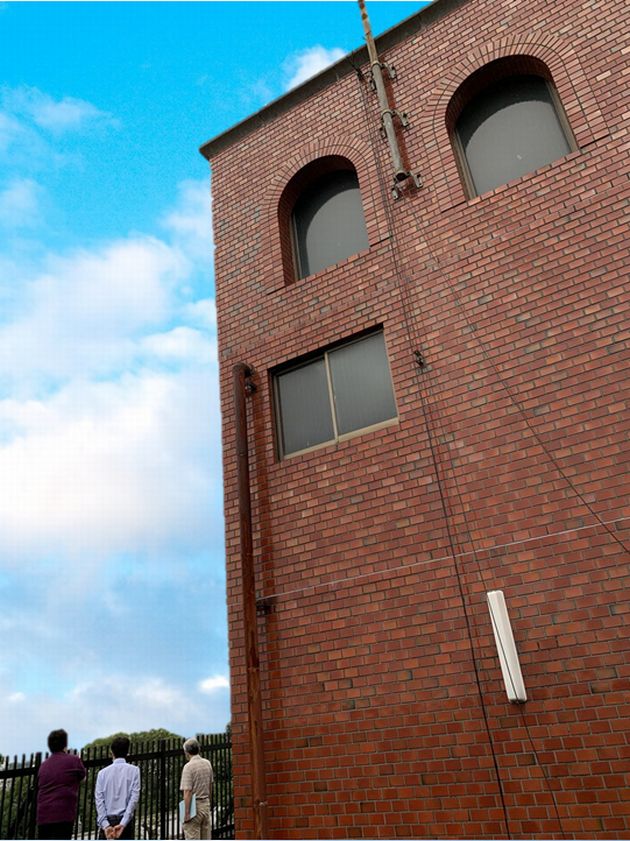 遠くからでないと見えないような屋上の塔屋の壁にもアーチ形が採用されていて、とても手が込んでいます。